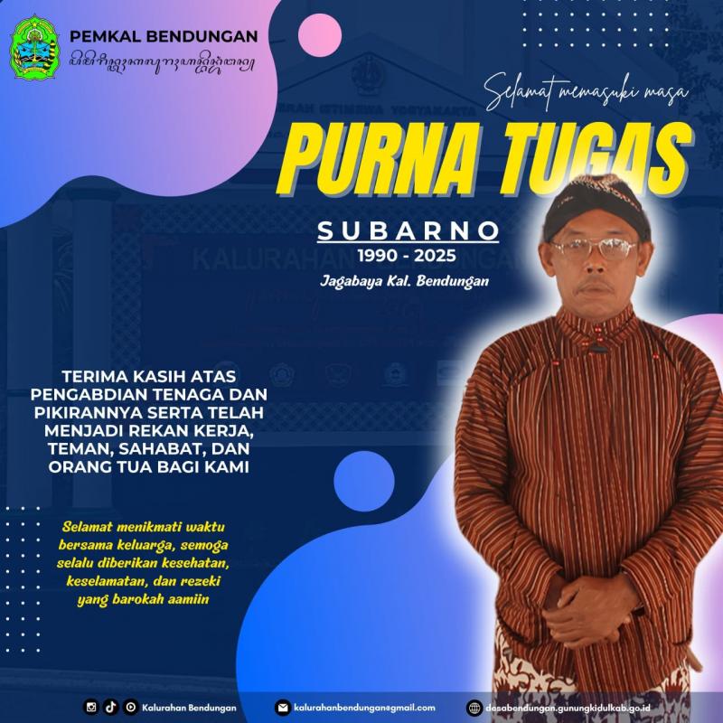 Bendungan SIDA – Setiap pekerjaan pasti ada akhirnya, seperti halnya sebuah jabatan dalam pekerjaan pun akan tiba saatnya berakhir. Hal tersebut juga berlaku untuk Pamong Kalurahan, seperti halnya Jagabaya Kalurahan Bendungan Bapak Subarno. Beliau tepat pada tanggal 5 November 2025 memasuki masa akhir jabatan atau purna tugas dengan alasan khusus yaitu Karena sakit. Beliau mengabdi kepada Kalurahan Bendungan kurang lebih selama 35 th.