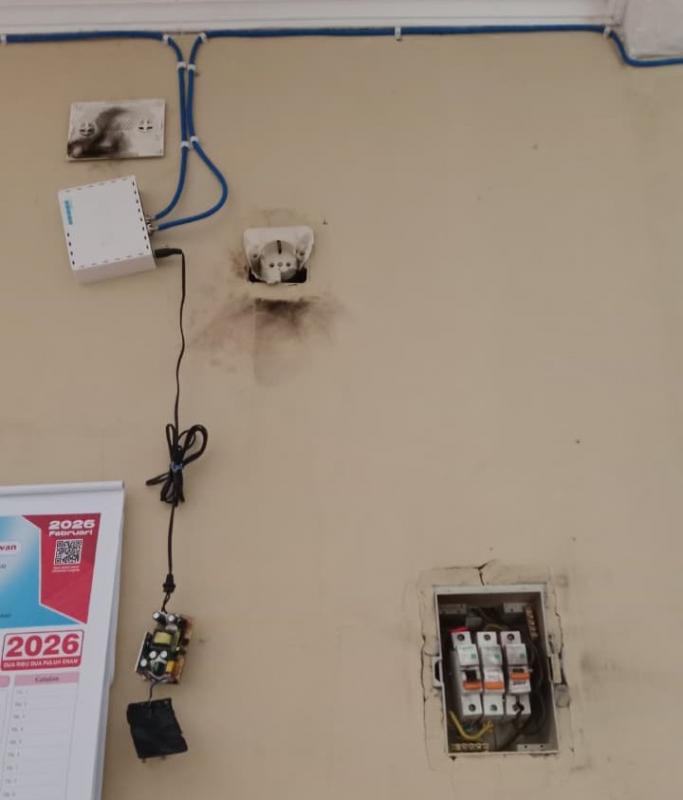 Bendungan SIDA - Hujan dan petir yang melanda Kalurahan Bendungan pada Selasa sore (17/2/26) yang terjadi sekira pukul 15.30 WIB dan terjadi petir yang diduga menyambar tower internet milik Dinas Kominfo di komplek Balai Kalurahan Bendungan, mengakibatkan perangkat internet terbakar dan jaringan instalasi Listrik terutama pada box panel MCB terbakar. Beberapa lampu pun ikut mati terkena dampak sambaran petir tersebut.